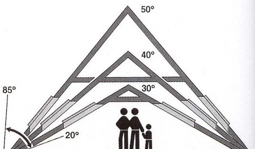 Угол наклона скатов кровли выбирается в результате компромисса между высотой мансардного помещения и устойчивостью крыши к ветровым нагрузкам
