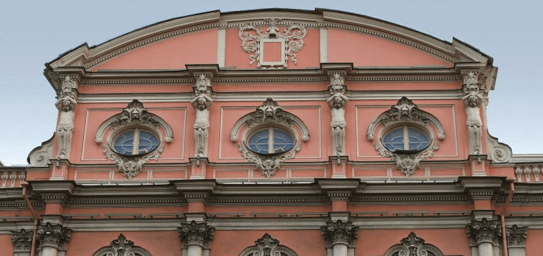 - полуфронтон (другое название — разорванный фронтон). В этом случае конструкция опирается на колонны или прерывается горизонтальным карнизом, а в полученное пространство помещают декоративные украшения;