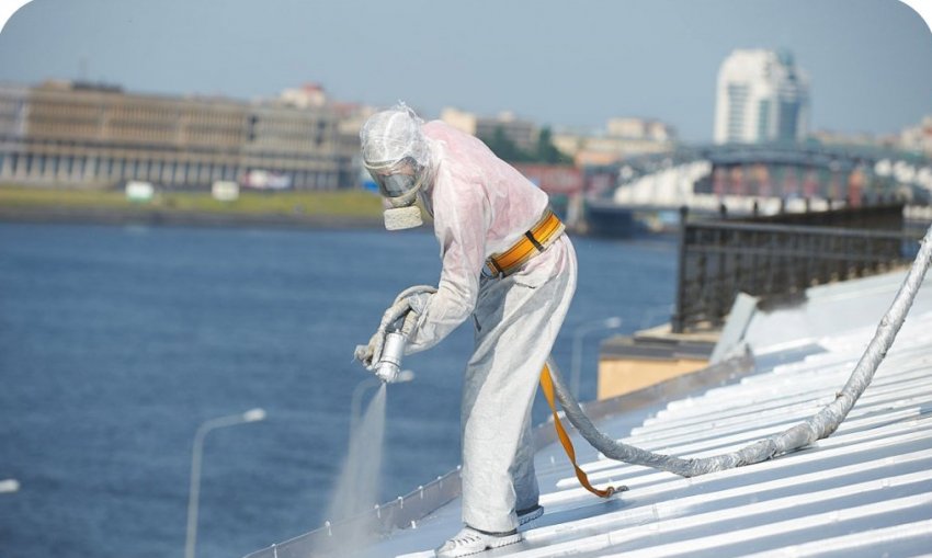 Применяется для гидроизоляции в капитальном строительстве: гидрофобная обработка фундаментов, цоколей, дна искусственных водоёмов, резервуаров, и в том числе — крыш. Особенности полимочевины: