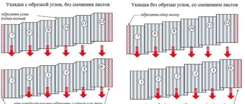 Способы укладки шиферного покрытия предполагают смещение как по вертикали, так и по горизонтали