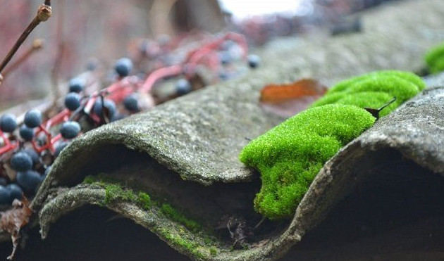 Проникая корнями в микротрещины на шифере, мох постепенно их увеличивает