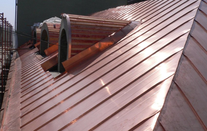 Медная кровля, обустроенная с помощью картин подобным методом, представляет собой абсолютно герметичное покрытие, состоящее из: