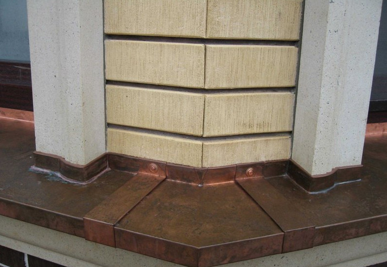 Простая форма медных отливов никак не уменьшает декоративной значимости этих архитектурных элементов и их защитных свойств