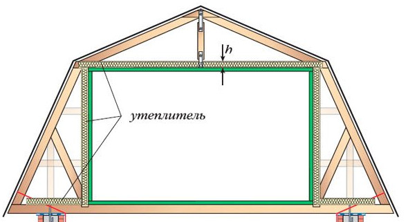 В конструкции ломаной крыши утепляют только мансардное помещение, оставляя в верхней части холодный треугольник