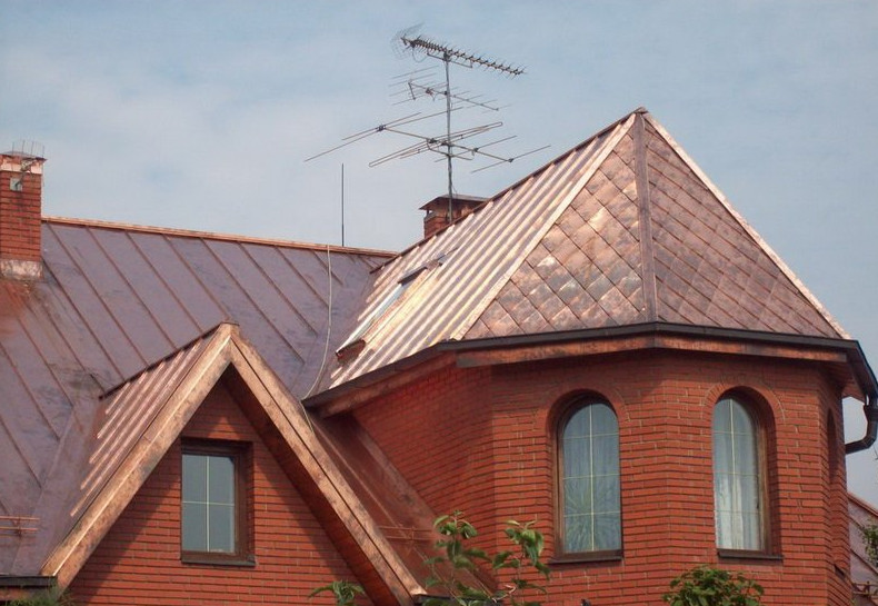 Медная кровля — это классика жанра. Все объясняется механическими свойствами меди, а именно ее пластичностью. Как результат — надежность соединений даже на крышах сложной формы. Недаром церкви покрывали именно этим материалом. Медь не подвержена коррозии, а значит долговечна. Эстетические свойства медной кровли могут приравнивать её к своеобразному произведению, как это замечательно отметил panas. Единственный недостаток — цена, который ограничивает применение этого материала.