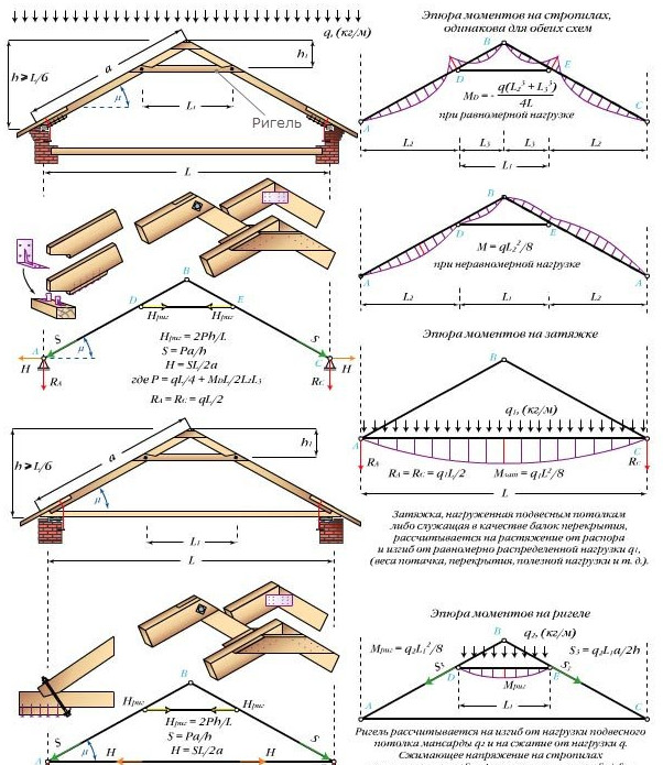 Виды стропильных систем двускатной крыши