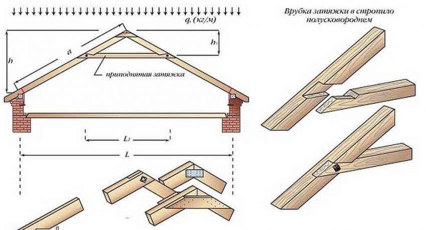 Фотогалерея: виды соединений в узлах стропильной системы двускатной кровли