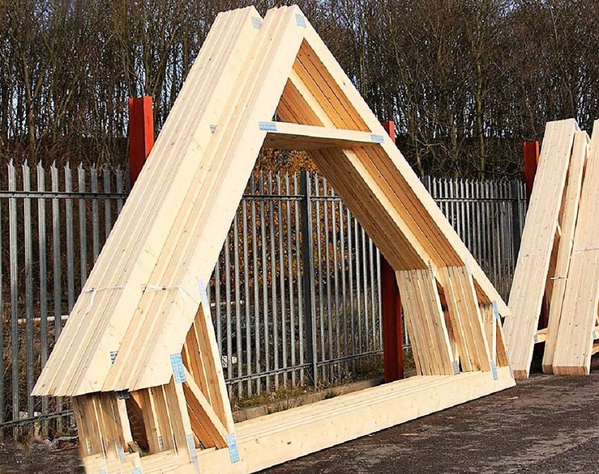 Для самостоятельного возведения двускатной крыши можно использовать готовые стропильные фермы, заказанные у профессиональных производителей