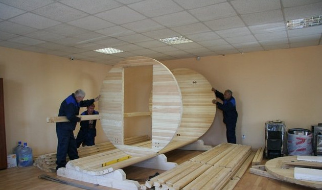 Стенки бани-бочки нужно собирать одновременно с двух сторон