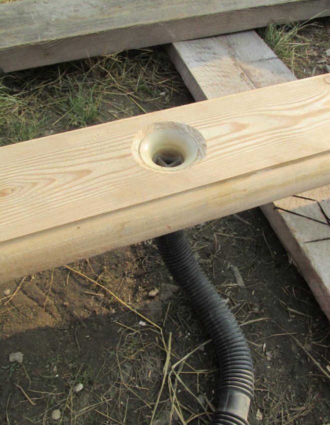 Прежде чем приступать к постройке бани-бочки необходимо тщательно продумать систему водоотвода. Многие считают, что достаточно просто сделать в полу несколько отверстий, через которые жидкость сможет уходить в землю. Но если баней пользоваться часто, то под ней всегда будет влажно, а это приведёт к появлению гнили и грибка. Вначале появится в помещении бани специфический запах плесени, затем пол начнёт прогнивать и в конце просто провалится. Поэтому стоит соблюдать определённые правила: