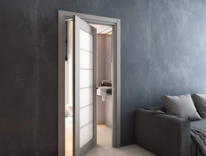 Подобная дверь может быть изготовлена из различных материалов: МДФ, стекла, древесины, пластика и т. д.
