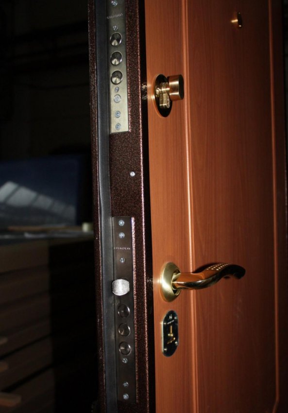 Постараюсь дать несколько практических советов как правильно выбирать металлические двери. Прежде всего вас должен интересовать вопрос толщины металла, я абсолютно убежден в том что в надежной бронированной двери толщина стали не может быть меньше 3 мм. Знаете чем отличается входная металлическая дверь от входной бронированной двери — только временем на взлом и открытие такой двери. Формально говоря все входные двери металлические, но на одних толщина металла как на консервной банке, а на других тяжелых дверях толщина металла такая что и от взрыва защитить сможет. Далее в хорошей двери должно быть не менее двух замков и хорошая система ригелей. Дверной ригель это металлические трубки которые выходят из дверного полотна в момент закрытия замков и надежно фиксируют металлическую дверь в дверной коробке. Также сегодня часто предлагают дверные полотна и дверные коробки заполненные бетоном или бетонной смесью. Но эта мера намного более оправданная для дверной коробки нежели для дверного полотна. Если заполнить бетонной смесью дверное полотно то дверь получается очень тяжелой и петли несут неимоверную нагрузку, поэтому такая опция актуальна только для крайне важных охраняемых помещений, а для простых квартирных дверей эта опция будет лишней. А вот заполнение дверной коробки бетоном иногда необходимо, т.к. это реально повышает её прочность при относительно небольших затратах на производство. Вообще конструкция дверной коробки может быть «замкнутой» и «не замкнутой». Замкнутая дверная коробка изготавливается из нескольких металлических профилей, которые сварены между собой, а не замкнутая система дверной коробки состоит из одного резаного профиля. Так вот заполнение бетоном дверной коробки особенно актуально для незамкнутых систем, т.к. их прочность существенно ниже по сравнению с замкнутой системой дверной коробки металлической бронированной двери. Также советую особое внимание при выборе металлической входной двери уделить дверному уплотнителю. Чтобы было понятнее почему важен этот вопрос проведу аналогию с металлопластиковыми окнами — в квартире может быть тепло и тихо пока закрыто окно, но только вы его откроете как через маленькую щель в помещение быстро проникает холодный воздух и шум с улицы. Т.е. уплотнитель играет огромную роль в предотвращении тепло- и шумо-обмена с внешним миром. Дверной уплотнитель должен быть равномерно оклеен по всему периметру двери и при закрытой двери он должен быть равномерно распределен по полотну, не должно быть ни малейшей щели.