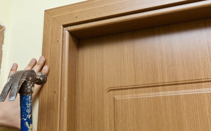 Наличники крепятся при помощи гвоздей с маленькой шляпкой