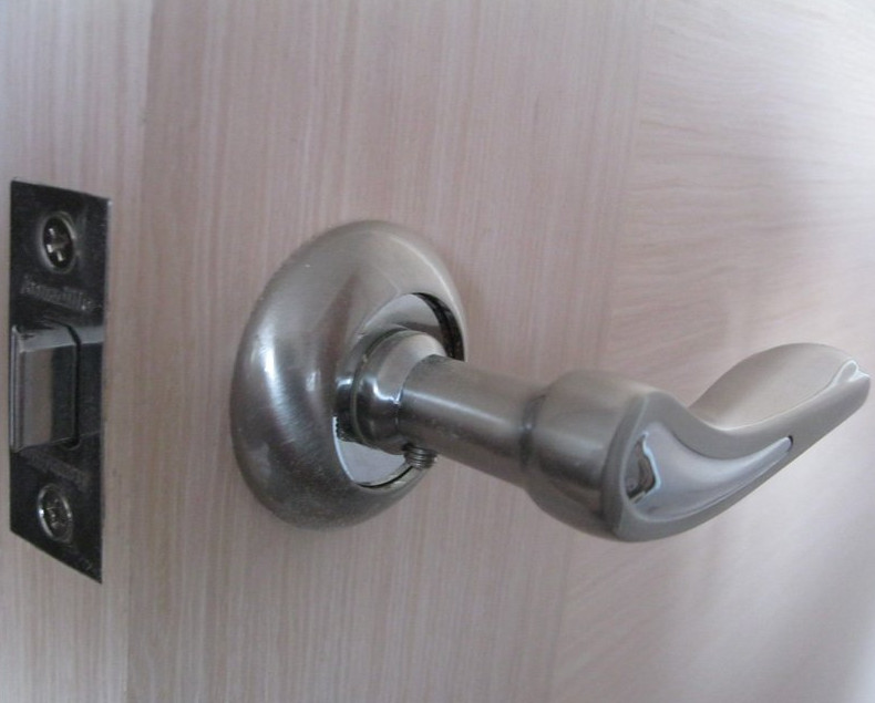 - роликовые, срабатывающие при нажатии на дверную ручку, механизм работы основан на действии пружины в корпусе замка, установленного в паз полотна;