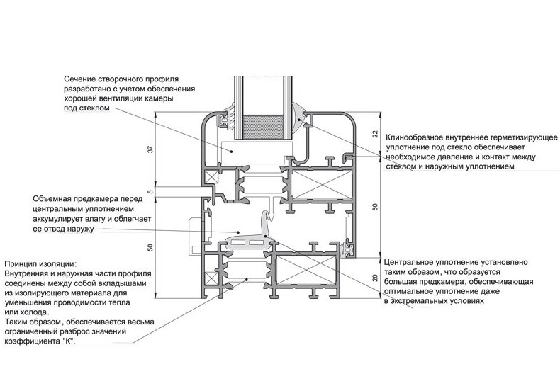 Строение многокамерного алюминиевого профиля под остекленение