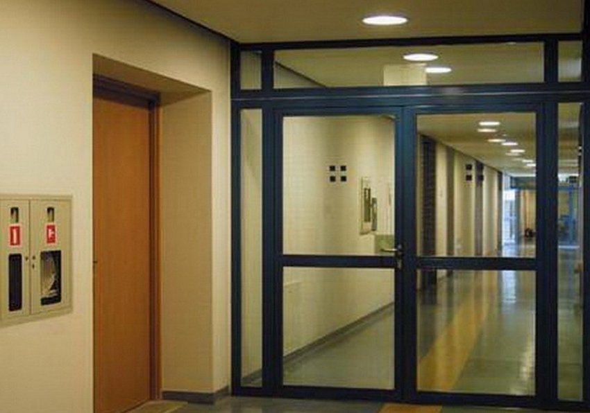 Стеклянная противопожарная дверь с алюминиевым профилем — прекрасный вариант для общественных помещений: она не плавится, не горит, не пропускает дым и огонь, а благодаря своей прозрачности предоставляет возможность вовремя заметить начавшийся внутри помещения пожар