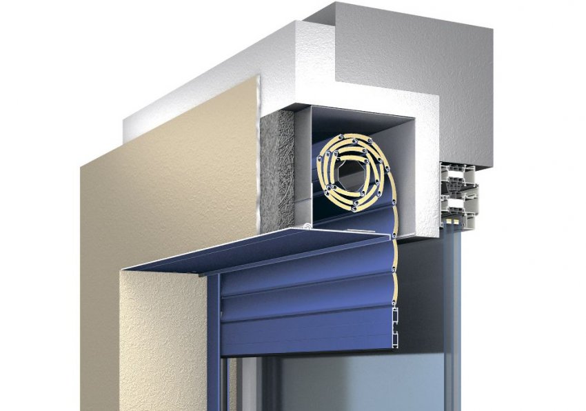 Механизм рулонной двери устанавливается в вехнем откосе двери со всеми последующими видами финишной отделки