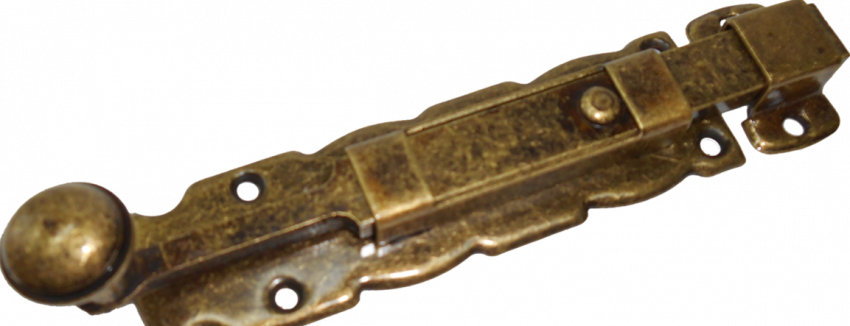 Накладной шпингалет для дверей, представляющий собой задвижку, может быть выполнен в антикварном стиле из меди, латуни, стали и алюминия