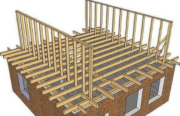 Верхние бруски дополнительно укрепляют всю конструкцию мансардной крыши и образуют каркас потолка