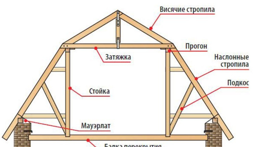 Стропильная ферма состоит из двух видов стропил — боковых и коньковых