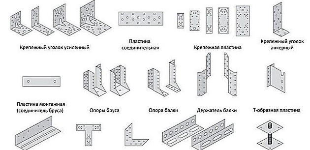 Для надёжного крепления элементов кровельного каркаса применяются различные металлические пластины и уголки