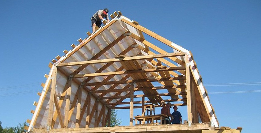 - В только что построенной крыше стропила и другие деревянные элементы, если они не были предварительно высушены, могут давать усадку. На этот случай не нужно торопиться с монтажом утеплителя и обшивки, чтобы иметь возможность подтягивать гайки на болтах и шпильках.