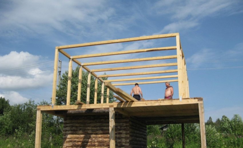Вертикальные стойки, скреплённые верхними горизонтальными ригелями, образуют каркас мансардного помещения