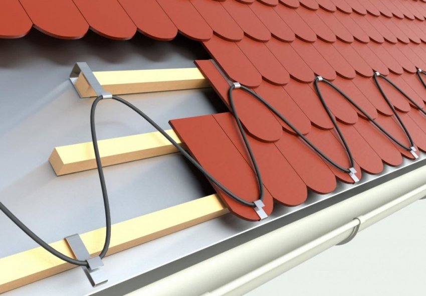 - Оборудовать мансардную крышу системой антиобледенения. Она состоит из греющих кабелей, которые укладываются по скатам и в элементах водостока. Придётся выделить средства на эксплуатационные затраты — нужно будет платить за расходуемую системой электроэнергию, но зато крыша будет гарантированно защищена от повреждения сползающим льдом.