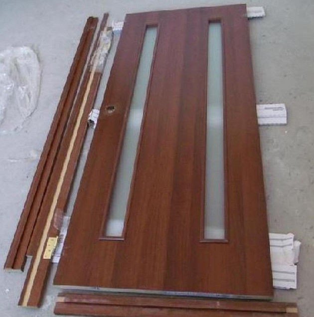 - Для монтажа бесклеевого материала используют столярный клей, а для обработки внешней стороны — лаковый состав. Чтобы лак ложился равномерно, наносить его рекомендуется на горизонтально выставленную дверь. Покрывается полотно тремя слоями, при этом для первого слоя используется мебельный нитролак, а для второго и третьего — разбавленный нитролак (в пропорции 1:1).
