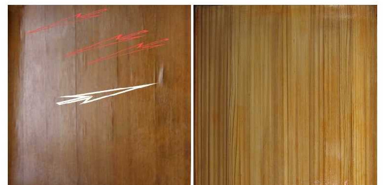 Повреждённые места в облицовочном слое следует удалить и поставить «заплатки» из подходящего по текстуре и форме шпона