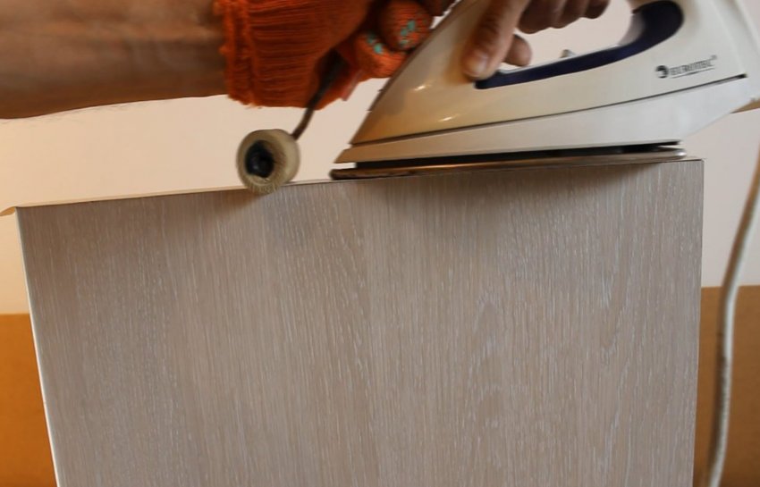 Для фиксации экошпона на дверном полотне нужно использовать утюг