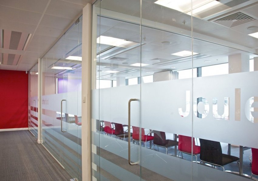 Использование межкомнатных стеклянных дверей нашло широкое применение в интерьерах офисов и цехов высокотехнологичных производств. Американские и японские принципы демократизации офисов при помощи прозрачных стеклянных дверей демонстрируют коллективу работоспособность руководителей, позволяют начальству постоянно контролировать работу в общем помещении. На офисных дверях модно размещать логотип или другую символику компании.