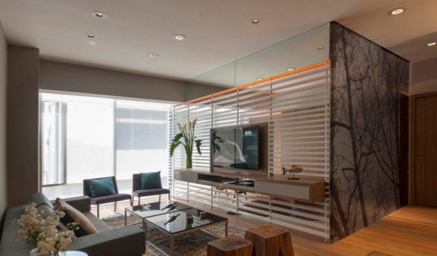Использование межкомнатных стеклянных дверей делает интерьер «воздушее»