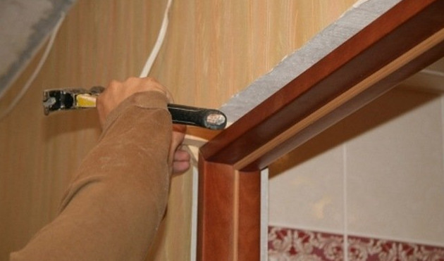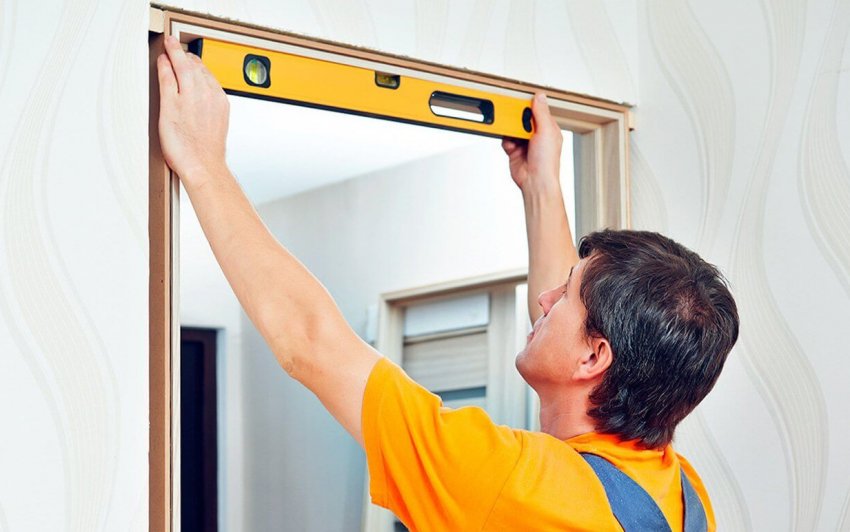 Уровнем проверяют, насколько ровно установлена дверная коробка