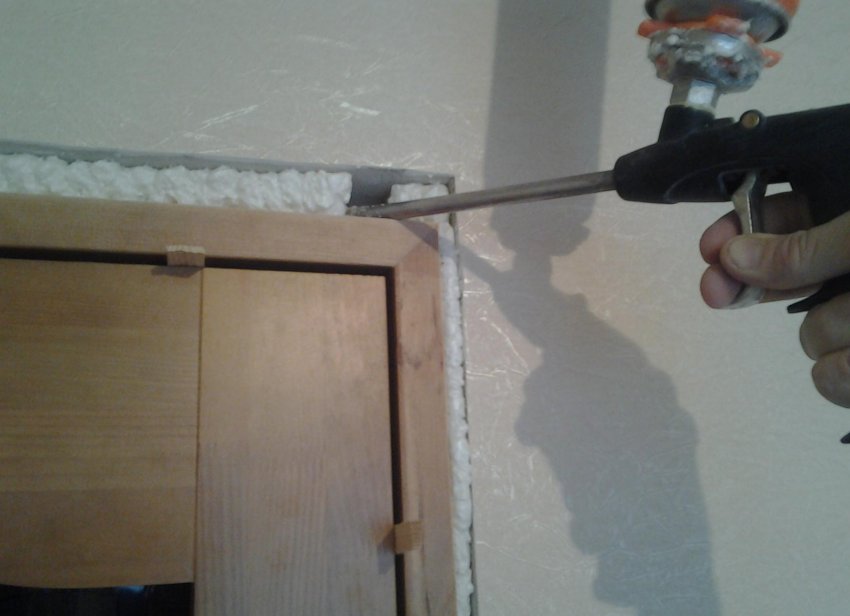 Используя монтажную пену, следует помнить, что при высыхании она увеличивается втрое, а значит заполнять пространство нужно не полностью