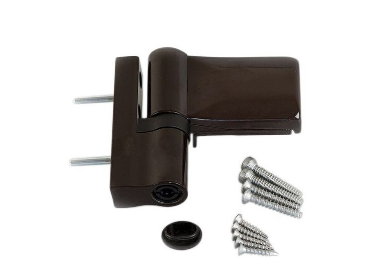 - Установка полотна. Сначала полотно насаживают на нижний навес. Дверь закрывают, при этом должны совпасть части верхней петли, когда это произошло, их соединяют при помощи штифта.