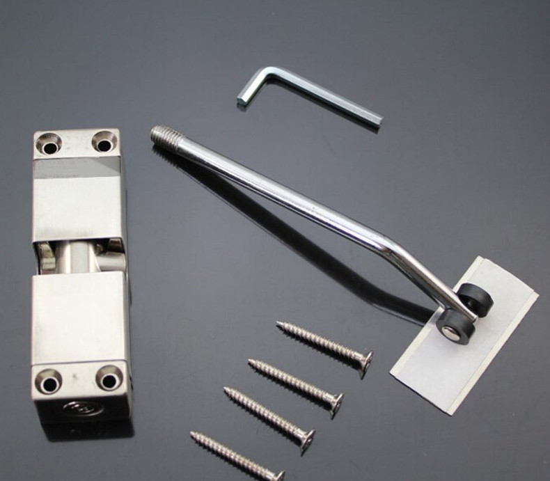 - Стопорные устройства. Они монтируются на пол или на стену и не дают возможности дверям распахиваться настежь, а также фиксируют их в определённом положении.