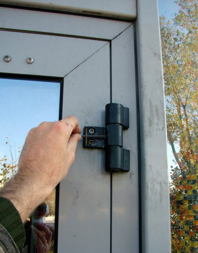 - Дверные петли. Хотя вес пластиковой двери и меньше, чем деревянной, для того чтобы она не провисла и надёжно работала, надо установить мощные петли и правильно их отрегулировать. Основные требования к дверным петлям: