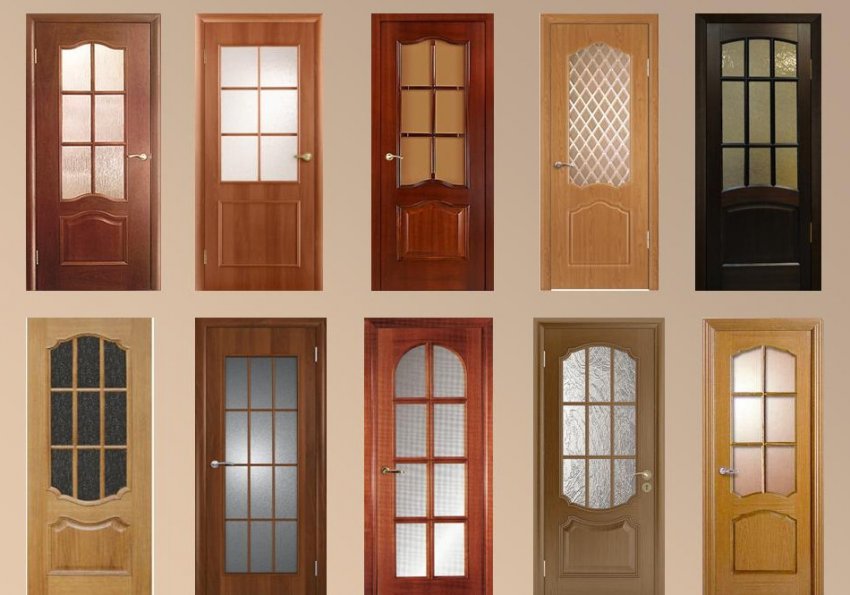 Множество дверей межкомнатного типа изготавливают со вставками из стекла: матовыми, полупрозрачными, цветными, с пескоструйным рисунком. Используется стекло, занимающее больше половины полотна, или делаются несколько мелких вставок. Такие элементы не только украшают дверь, но и пропускают свет, дополнительно оформляя пространство помещения.