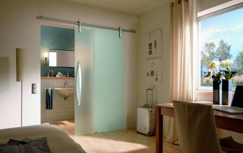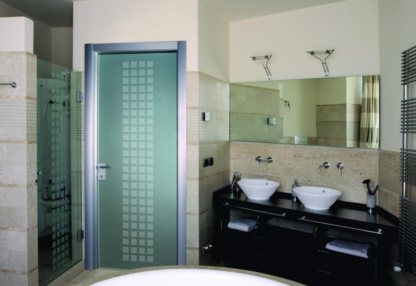 Стеклянная перегородка уменьшит воздействие пара и влаги на поверхность двери