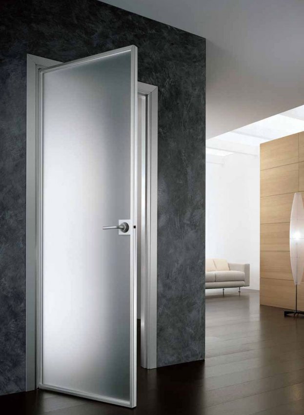 Стеклянная дверь всегда выглядит нетривиально и изысканно, а если изготовлена из закалённого стекла, то теряет основной минус стеклянных поверхностей — хрупкость, поэтому сможет выдержать все необходимые нагрузки.