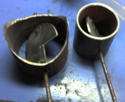 - В одну из боковых стенок на уровне верха топочной камеры нужно врезать поддувало с заслонкой. Оно изготавливается из короткого отрезка трубы диаметром 50–60 мм. Просверлив в поддувале отверстия диаметром 8,5 мм, в него нужно вставить ось заслонки, выполненную из арматуры диаметром 8 мм. С одной стороны ось должна выступать на достаточную длину — после сгибания её хвостовик будет выполнять функцию ручки. Остаётся приварить к оси стальной диск, диаметр которого соответствует внутреннему диаметру поддувала. Чтобы заслонка не двигалась самопроизвольно, её рукоятку оснащают пружинным или резьбовым фиксатором.
