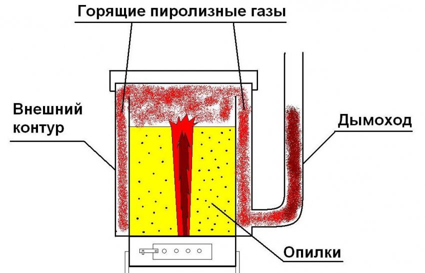 Схемы устройства различны, но принцип работы пиролизных печей един — сгорание топлива без кислорода