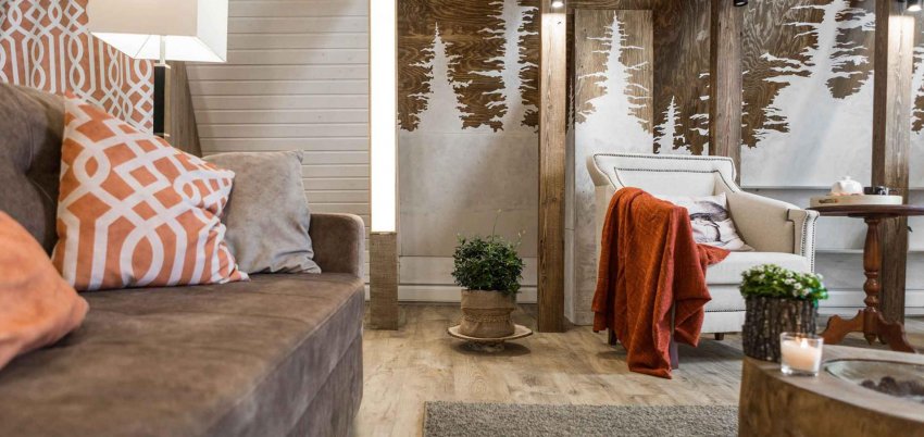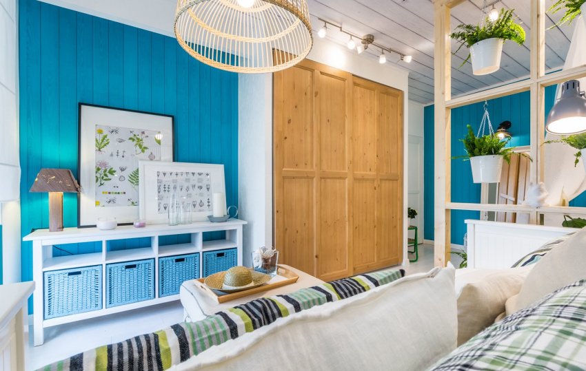 Если вы не хотите делать все стены одинаковыми, можно использовать принципы комбинированной отделки. Отдавая дань моде на экологичность, большинство дизайнеров стараются использовать дерево. Но выглядеть оно может по-разному: