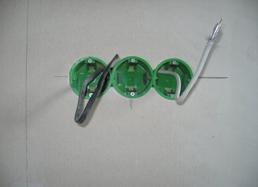 Подрозетники стоит установить в гипсокартон до начала шпатлёвки