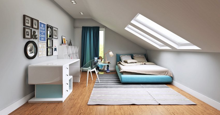 Благодаря глянцевой краске на скатах свет наполнит мансарду даже через небольшое окошко