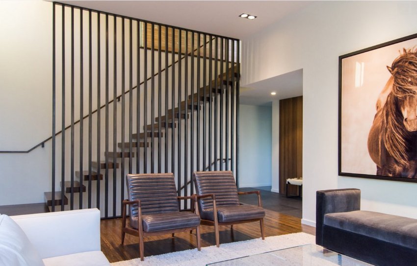 Рейки закреплённые на стене будут создавать подсознательное впечатление, что за ними есть дополнительное пространство