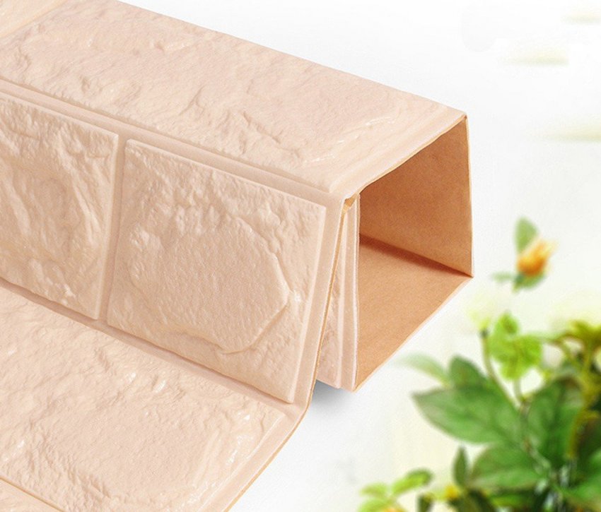 - использовав мягкие наклейки из вспененного пенополиуретана (они могут имитировать на только ткань, но и камень с кирпичом).