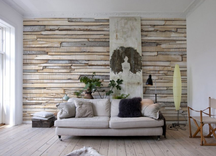 - деревянные обои — тонкие деревянные плашки, собранные на тканой основе (по сути, мало отличаются от бамбуковых обоев, но делаются из более привычных для нас сортов древесины);