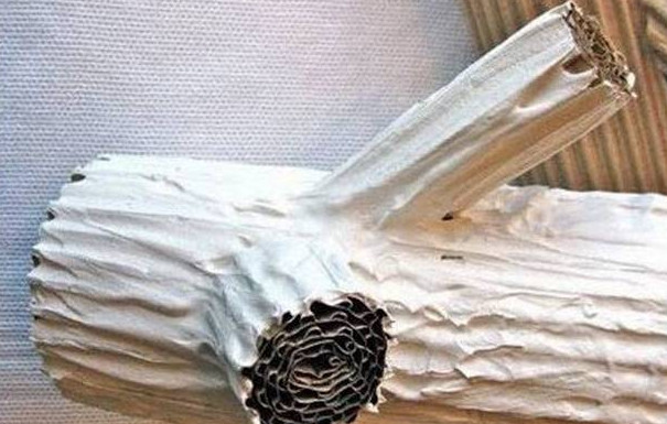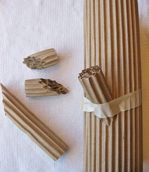 Из гофрированного картона можно сделать поленья, очень похожие на настоящие